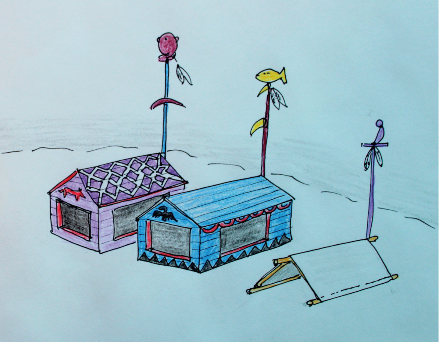 I envision an installation that reflects my people's lives, our deaths, and spiritualism. So a bit of what life was like, with the lean-to and tea, our deaths with the Spirit Houses, which illustrates our own deaths but also the death of my people's culture and also the Spirit World that we used to believe in.