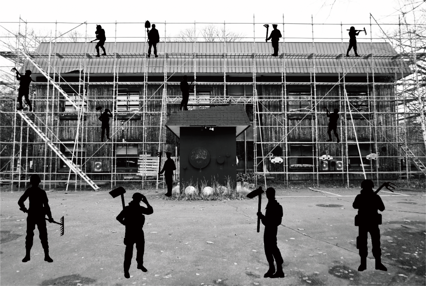 役目が終わった遊郭。時間が止まったように佇む一室には、人の営みの残り香が微かに漂っている。そんな空間に雄大な自然の中で見つけた生物の営みを展示する。不在になった空間が生物の生きた痕跡によって再生され、次第に呼吸する。