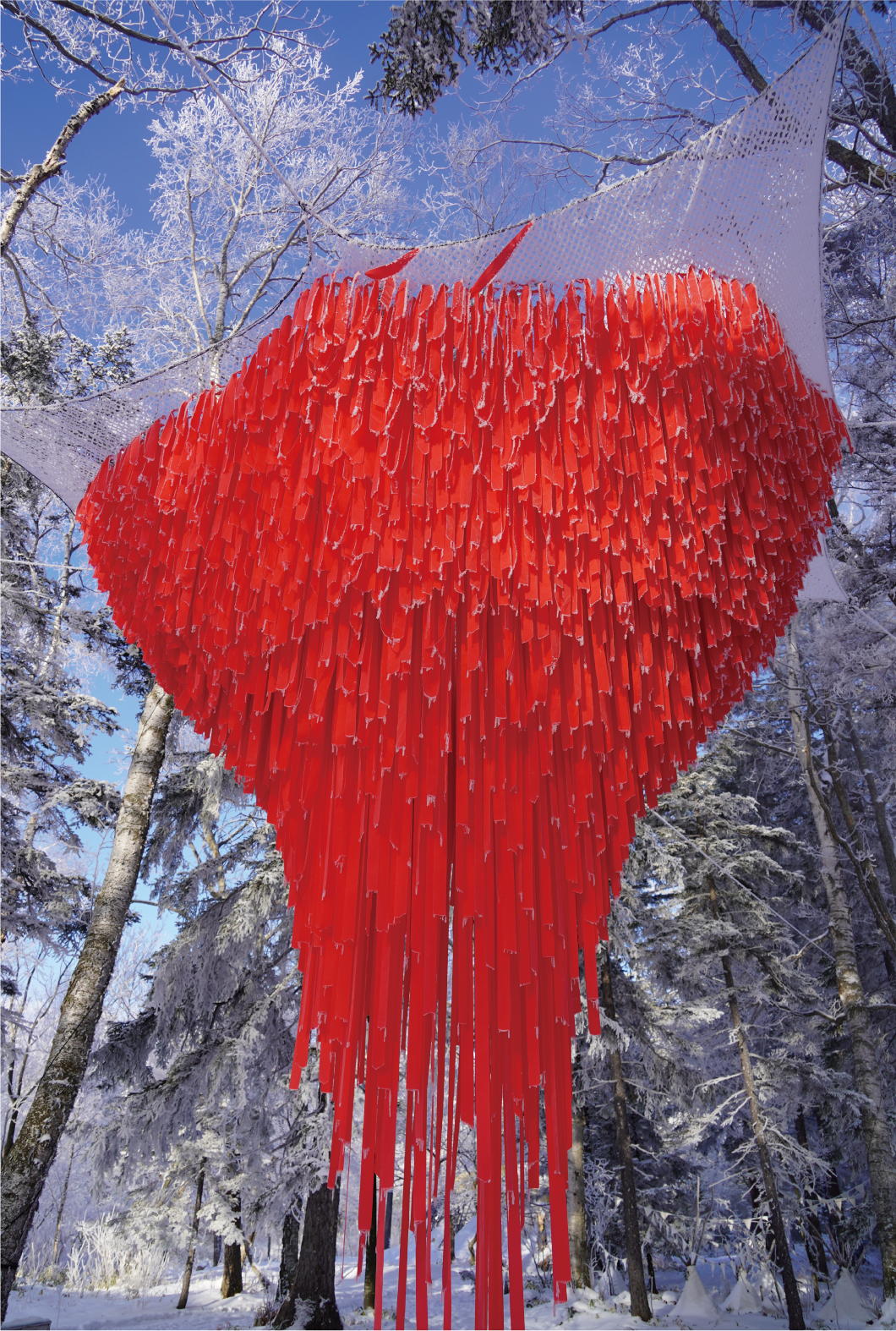 マイナス15度を超える冷気と温泉川から舞い上がる湯気が空中で融合し自然美とアート作品の調和が生まれます。場所固有の特別な「極寒風景」に対し、アーティストは何が創れるのかを問う国際的アート実験場となっています。「自然美」と「アート」がお互いにその美を際立たせる。ここは神々と作家が創る特別な場所なのです。(Producer 善/ZEn)