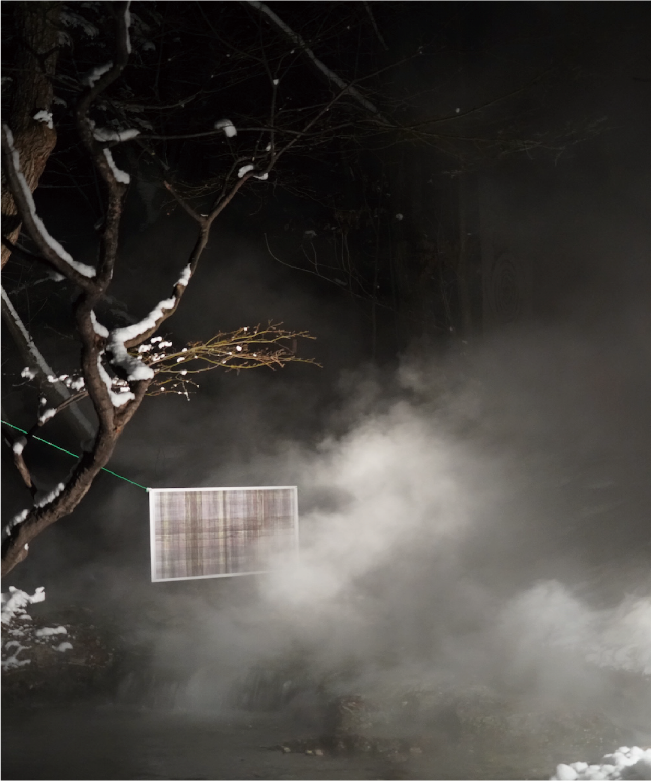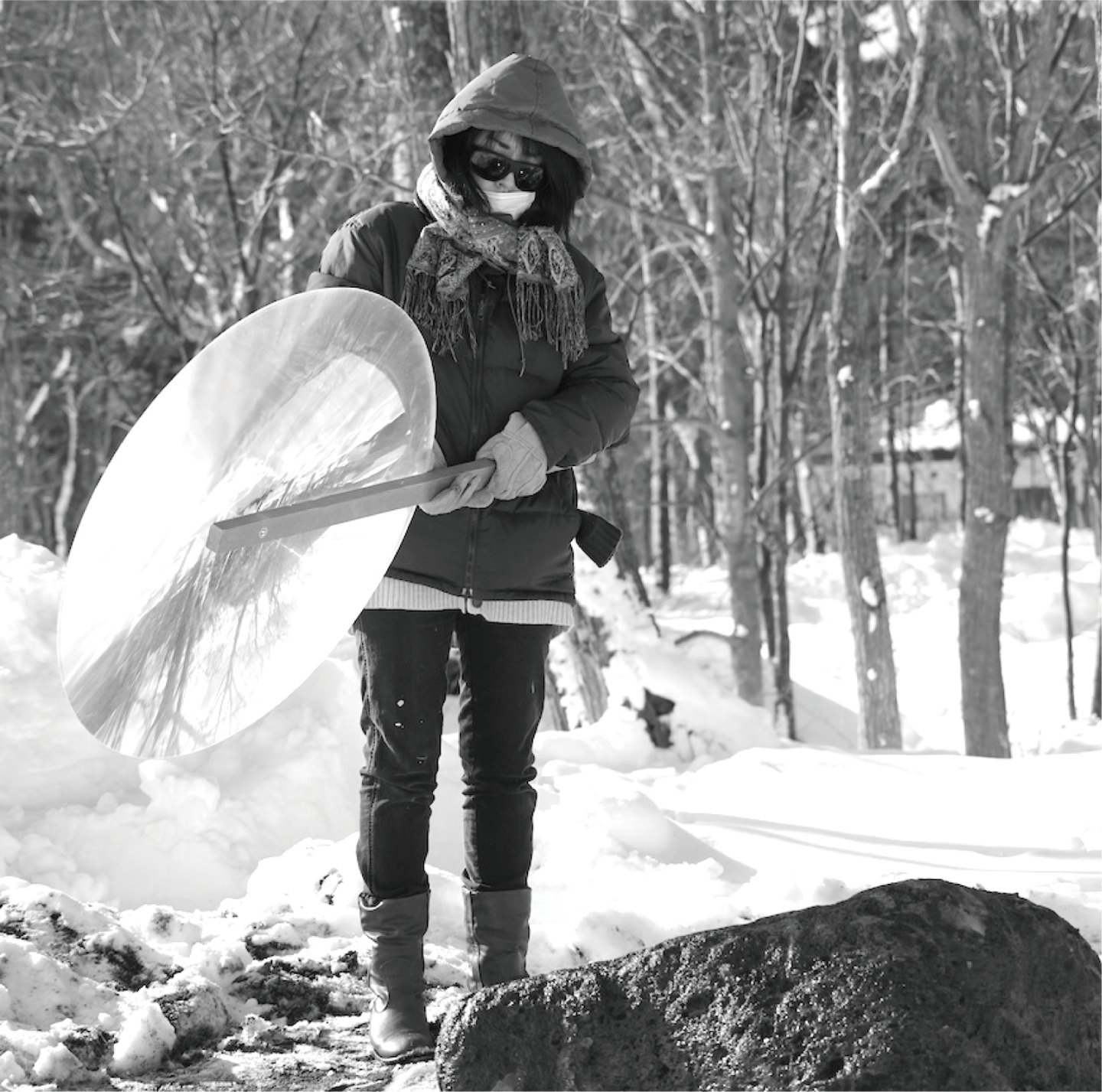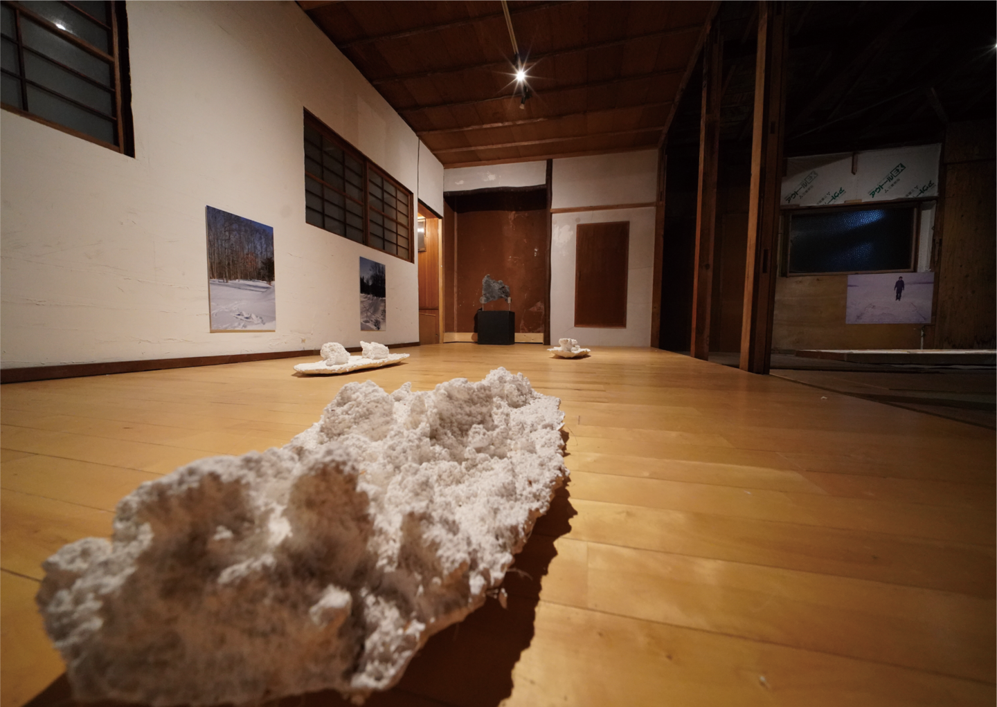 風景はそこに住み関わってきた人によってつくられ、人もまた風景によってつくられている。 しかしその関わりは「不可視」である。私は極寒芸術祭において 2015 年以降、これをテーマにした作品を制作してきた。 人や風景や様々な事物は凍り、雪に覆われ、やがては見えなくなり、そして巡る。 極寒の雪原に消えてゆく私自身のセルフポートレイトに、この場所に流れてきた固有の時間を 体現させたい。