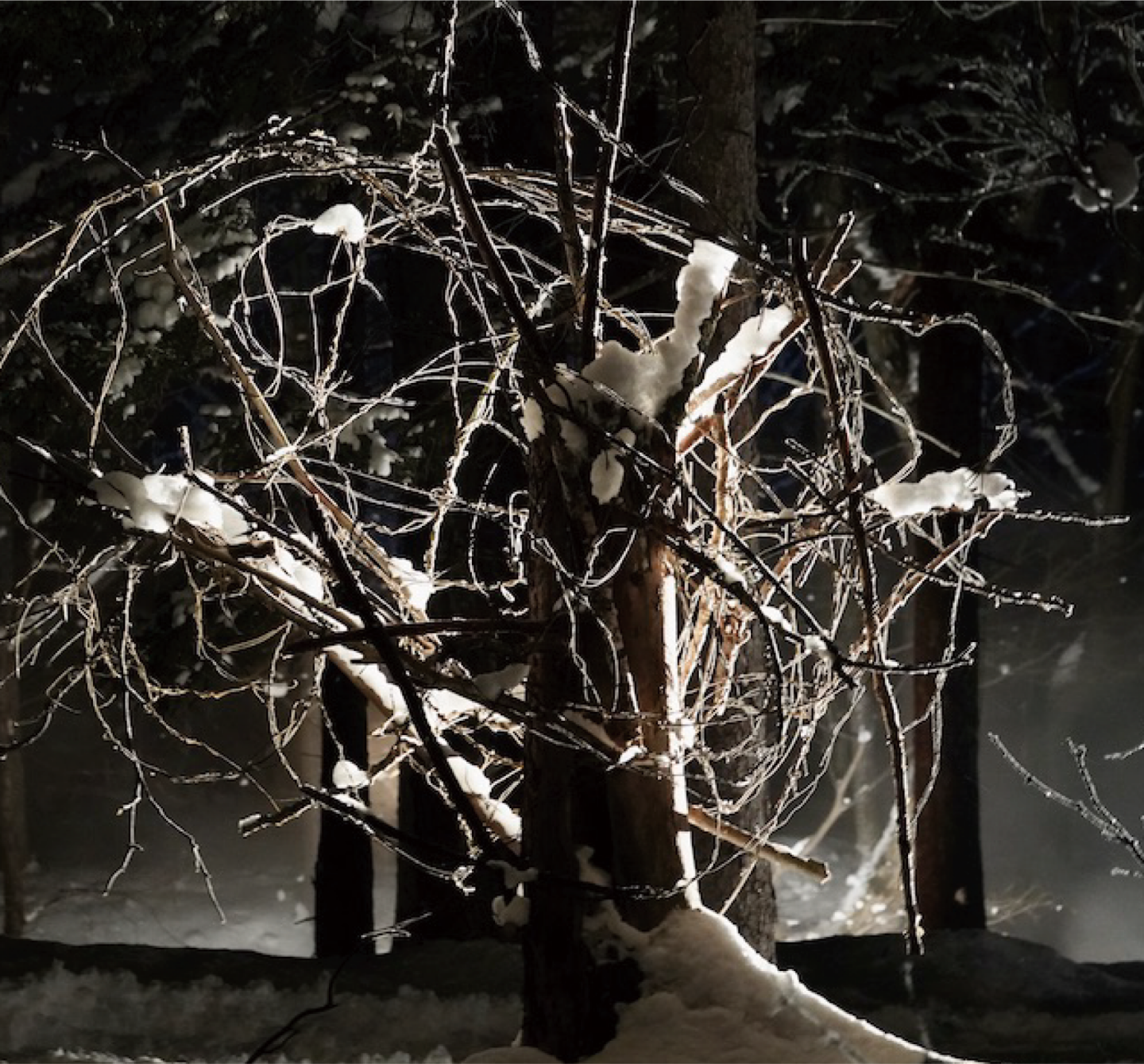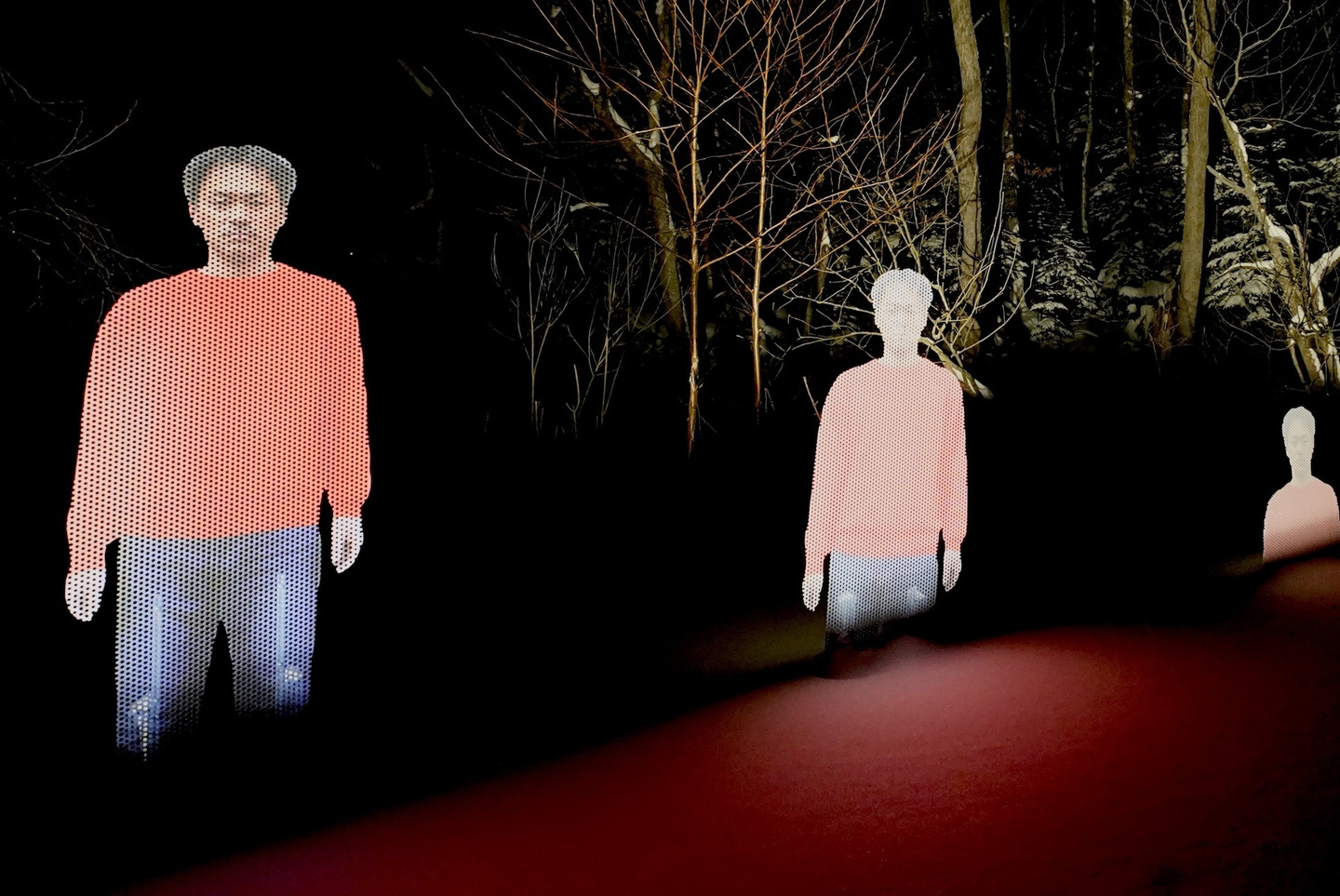 自然との接点の中で、人間はしばしば強い警戒の対象と見なされる。作品では、鹿から強い意思を持って発せられた鳴き声を、パラメトリックスピーカーと呼ばれる特殊なスピーカーを用いて発出し、超指向性を持った音が「視線」「緊張感」「敵意」を再現する。雪中におかれた椅子に座った瞬間に、自然との対峙が始まる不思議な体験をドウゾ。