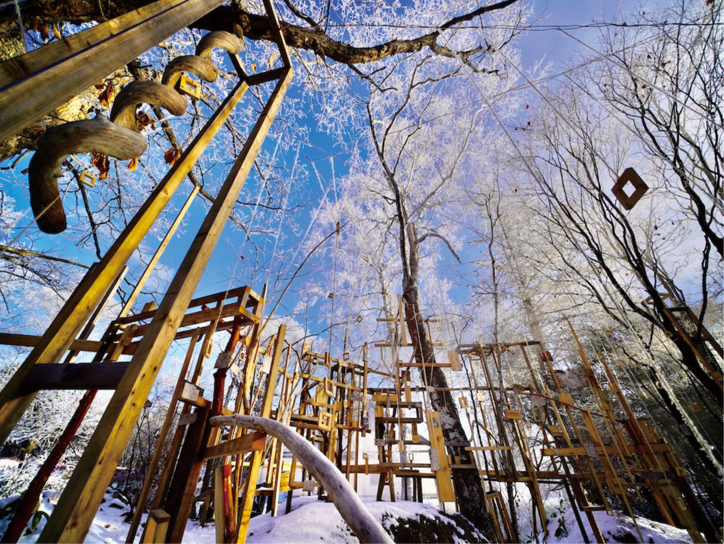 The "Extreme Cold Art Festival" is held from February 2nd to March 3rd every year at Kawayu Onsen, Teshikaga Town, Hokkaido. The main attraction of the art festival is the ``Snow Forest Outdoor Art Museum,'' which is located in the forest behind the "ARtINn Extreme Cold Art Contagion Machine". Not only domestic contemporary artists, but also overseas artists from Australia, Canada, Mexico, Taiwan, Germany etc., reside here. Over 40 works will be on display during the exhibition period, and can be viewed from dawn until 9pm. There is also a ``Showa Yukaku Museum,'' which is housed in a 70-year-old private house. The museum exhibits cutting-edge art works.