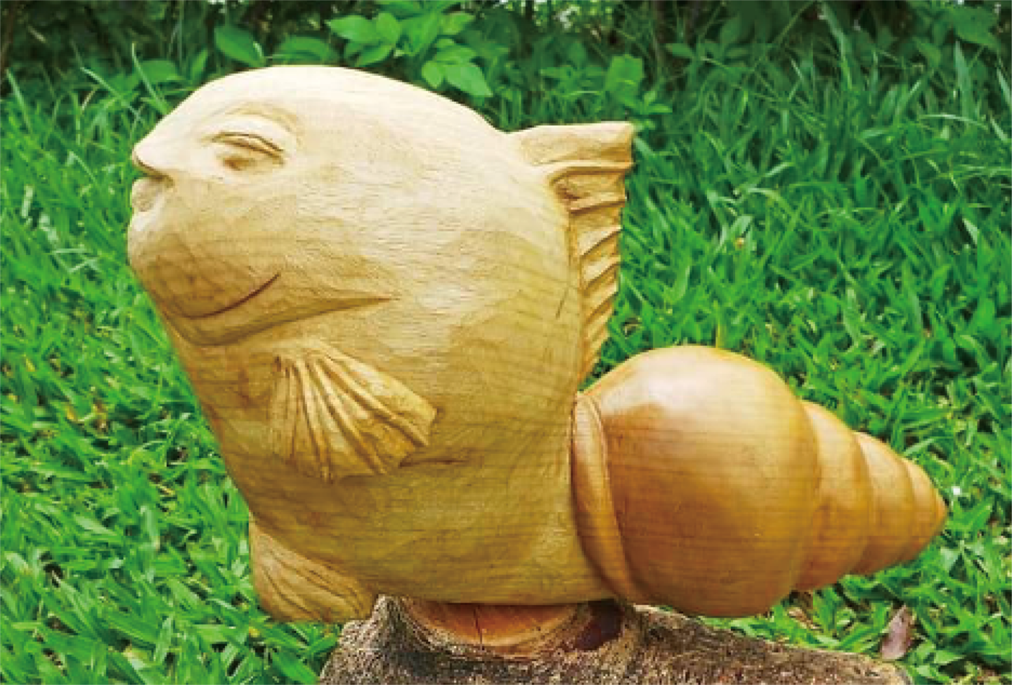 創り出すものは「人間と自然との間をつなぐ物」。様々な「?」が創造の元で作品はいつも野外で作る。「木を切らない林業」や「海を曝気するテトラ」冬の環境芸術グループ「THE ICEMANS」等、環境と社会とのダンスを模索する。