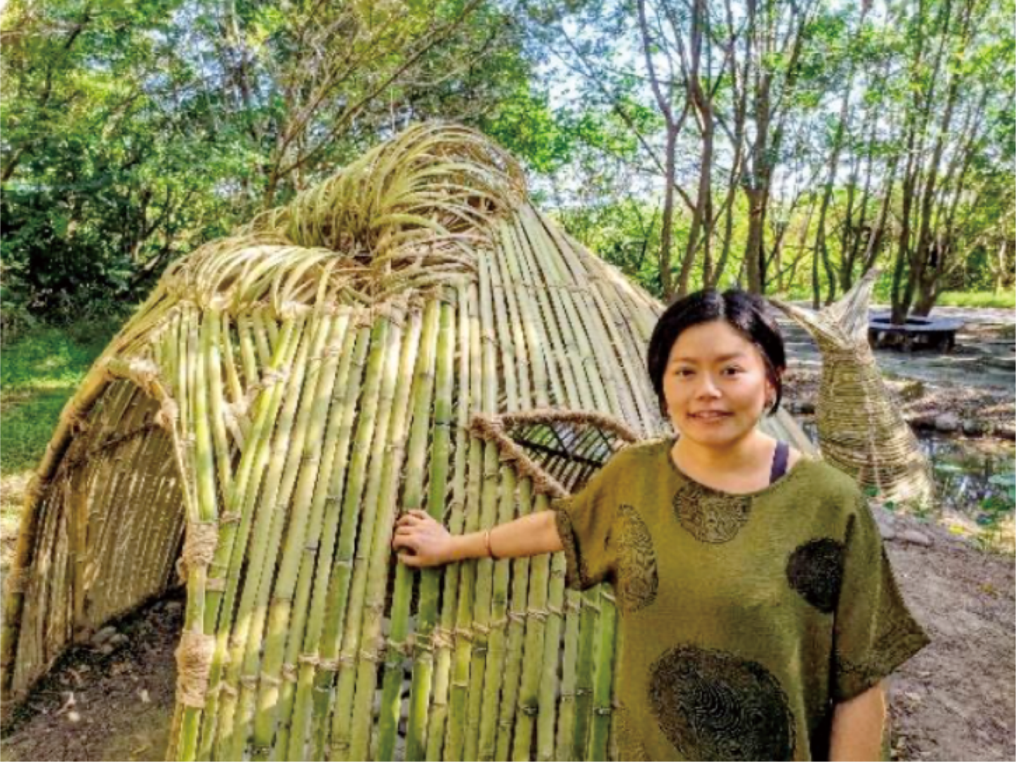 その場にある素材で自然と直接やり取りする。そんな思いを篭めながら樹木を擬人化、巨大な羽根を制作した。今年は蝶のように美しい色を羽根に乗せることが出来るといいなあと考えている。